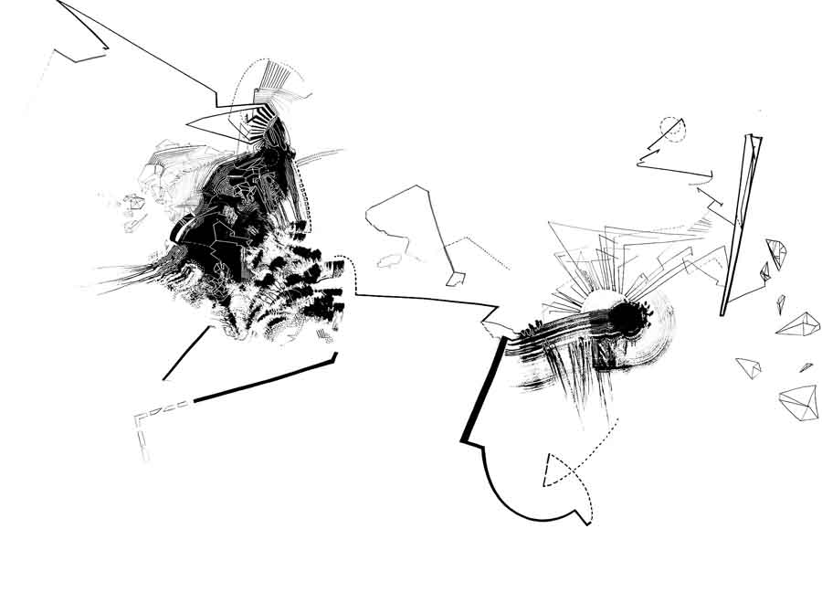 En mis dibujos a tinta trabajo a partir de conceptos compartidos por las artes visuales y la música, como la composición, el tiempo, la textura, el ritmo, los contrastes, las tensiones, entre otros. Podría decir que en mi trabajo todos estos elementos se combinan, ahora sí utilizando un término exclusivamente musical, en contrapunto. En la música, esto supone hablar de nota contra nota, en mi modo de entender el dibujo, plantea una relación entre elementos para sugerir un sistema de tensiones y distensiones.