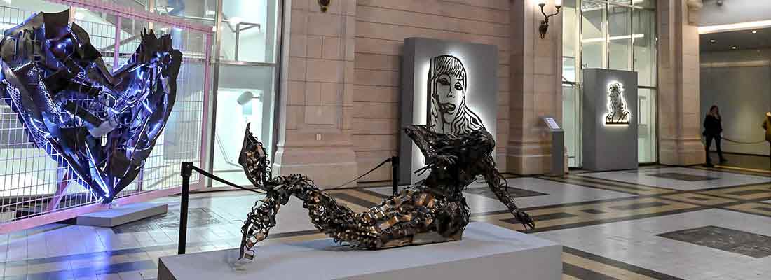 El corazón reciclado, recauchutado y brillante continúa expandiéndose, mediante la exhibición de piezas que presentan ídolos nacionales, frases y seres imaginarios.