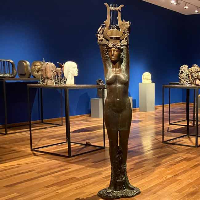 La exhibición Antonio Pujia. La escultura en clave poética ofrece una selección de más de treinta esculturas con diversas temáticas, estilos y técnicas del extraordinario artista.
