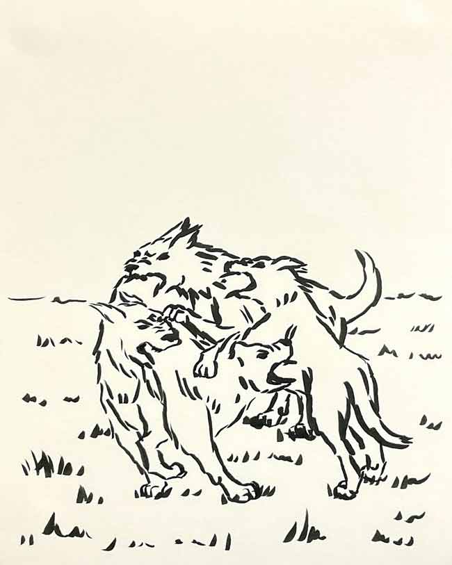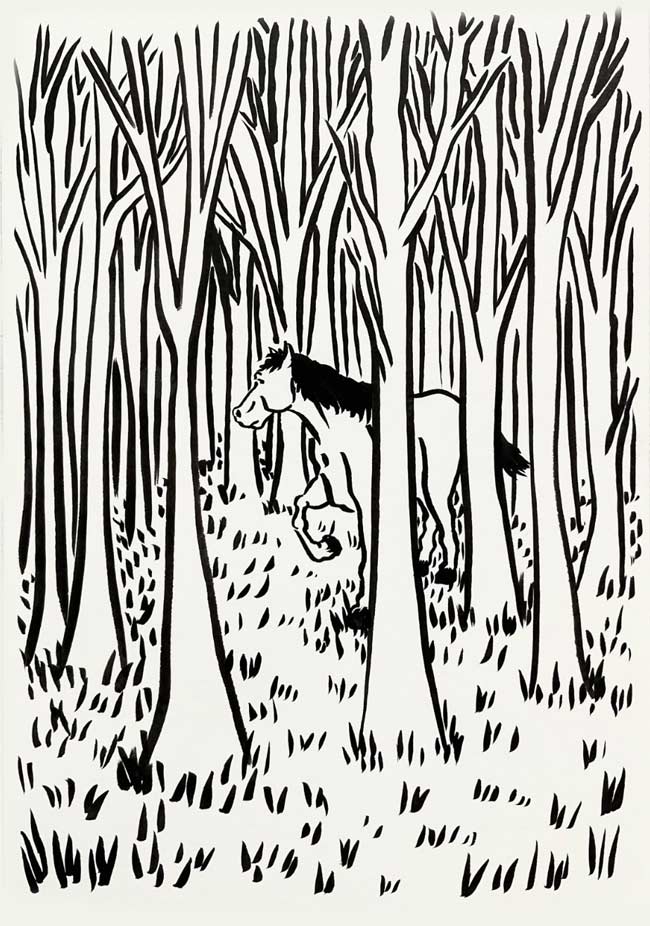 Se trata de 62 trabajos realizados en tinta sobre papel, cada uno acompañado por su título. El conjunto se presenta como un archivo abierto de imágenes recurrentes en la práctica del artista: escenas, figuras, gestos y situaciones que conforman un imaginario desplegado.