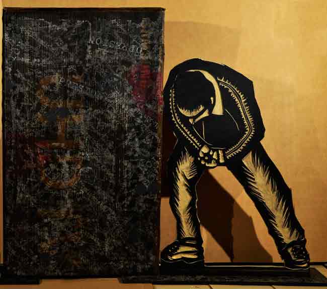 La muestra “Gráfica cartonera conurbana” nos invita a reflexionar sobre la revalorización del material de descarte en las artes visuales. El artista Rubén Sassano inició esta indagación durante la pandemia, reutilizando cajas de uso cotidiano como nuevos soportes para sus obras.