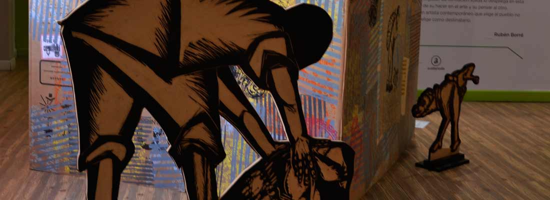 El cartón corrugado, intervenido mediante talla directa, serigrafía, estarcido y esténcil, se convierte en vehículo de narraciones urbanas y sociales, visibilizando escenas del conurbano, voces populares y reclamos colectivos.