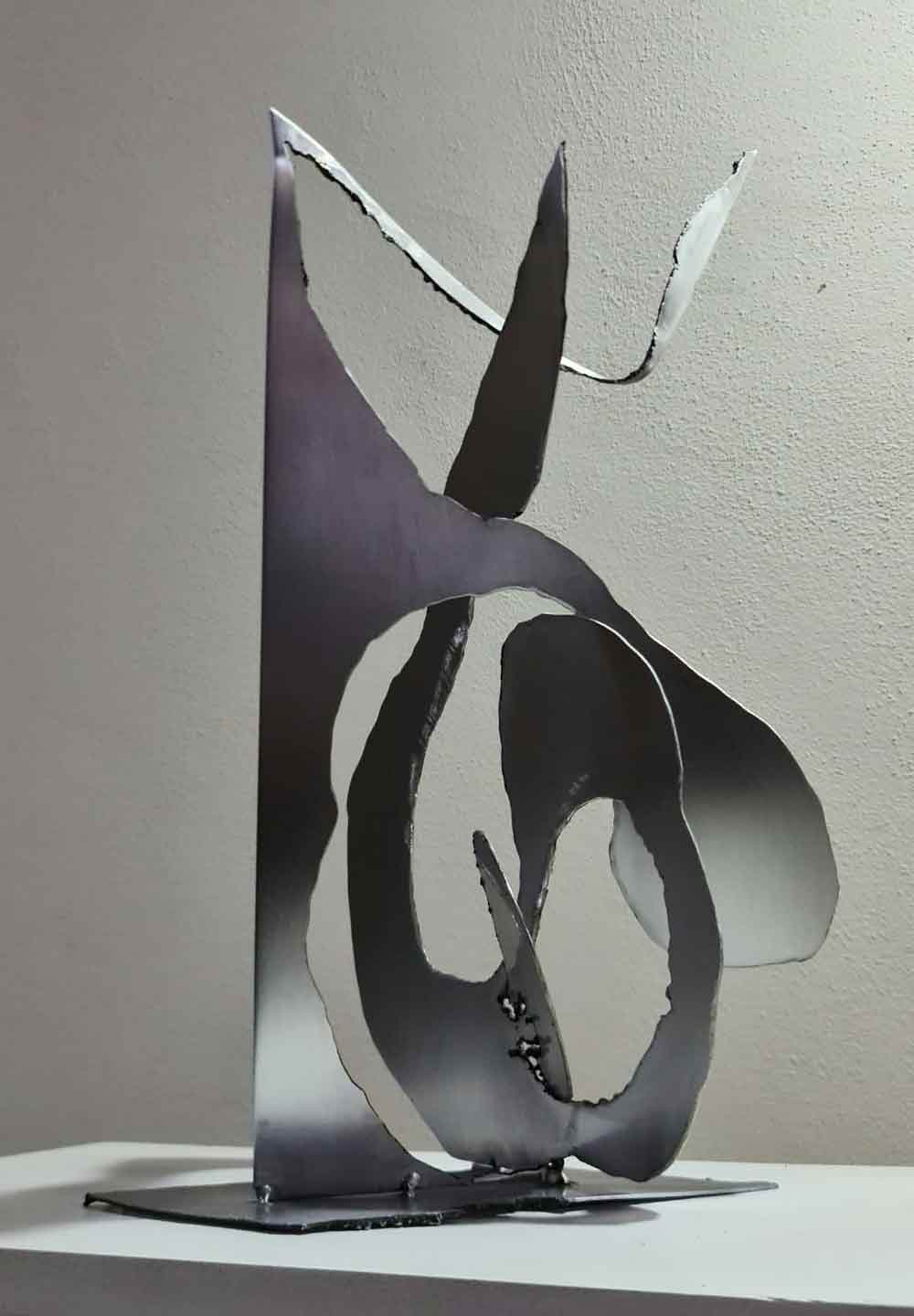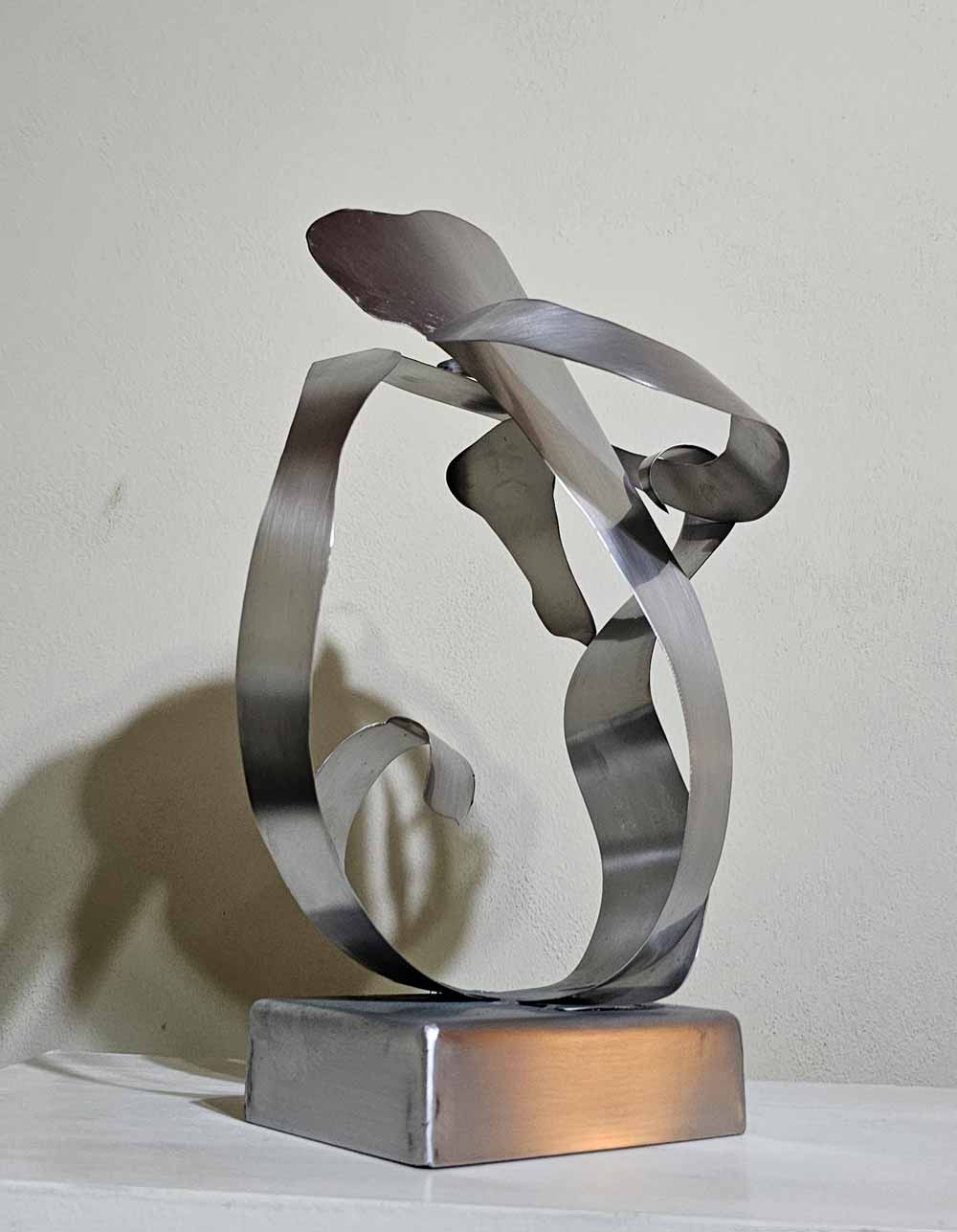 Trabajo con el acero inoxidable como una materia de tensión y permanencia. Mi práctica escultórica se centra en explorar cómo la forma puede contener energía, sensibilidad y movimiento. Construyo estructuras abstractas donde la precisión técnica y la intensidad emocional conviven en equilibrio.