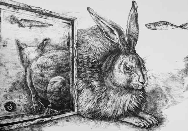 Obra acrílico /cartulina para premiar la 22 edición del concurso nacional de cuentos Ernest Hemingway, 2010.