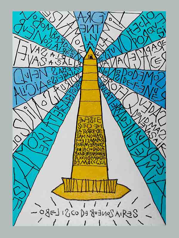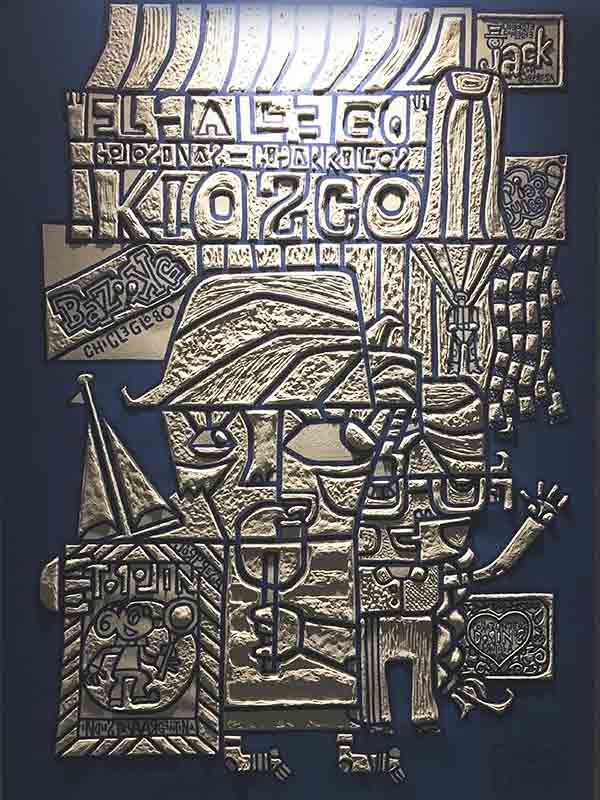 Nos invita a recorrer su trabajo más despacio, lentamente, porque el mensaje atrae la atención sobre sí mismo, un mensaje lleno de símbolos, de letras, de signos, representando un mundo actualizado y contemporáneo.