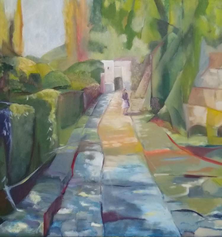 La naturaleza y los viajes son mis pasiones y la fuente de inspiración de mi obra, el color . Trabajo la tierra con mis manos, cosecho sus frutos y contempló todos los días las sierras,tomo fotos realizó bocetos ,pienso el clima ,elijo paleta y luego me sumerjo en el trabajo,la figura humana si aparece en ella es casi un elemento secundario. Considero a la naturaleza como equilibrio interno del ser humano, el punto de calma e integridad como respuesta al mundo agitado y caótico e intento reflejarlo en mí obra.